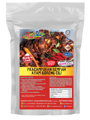 - Combine 400ml water with AsliPure’s Chicken/Meat “Sambal” Premix Spices.